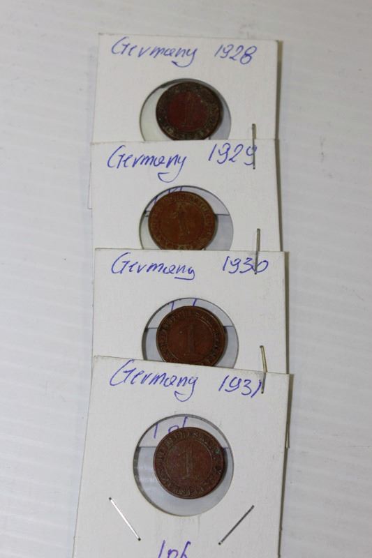 4 GERMAN 1 PFENNIG COINS 1928-29-30-31