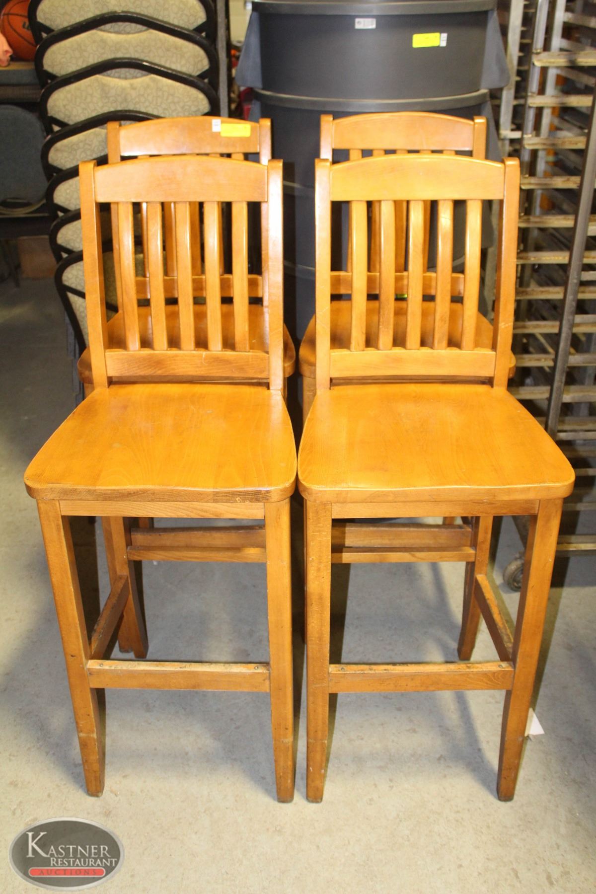4 HIGHBACK WOODEN BARSTOOLS W/ FOOTRESTS
