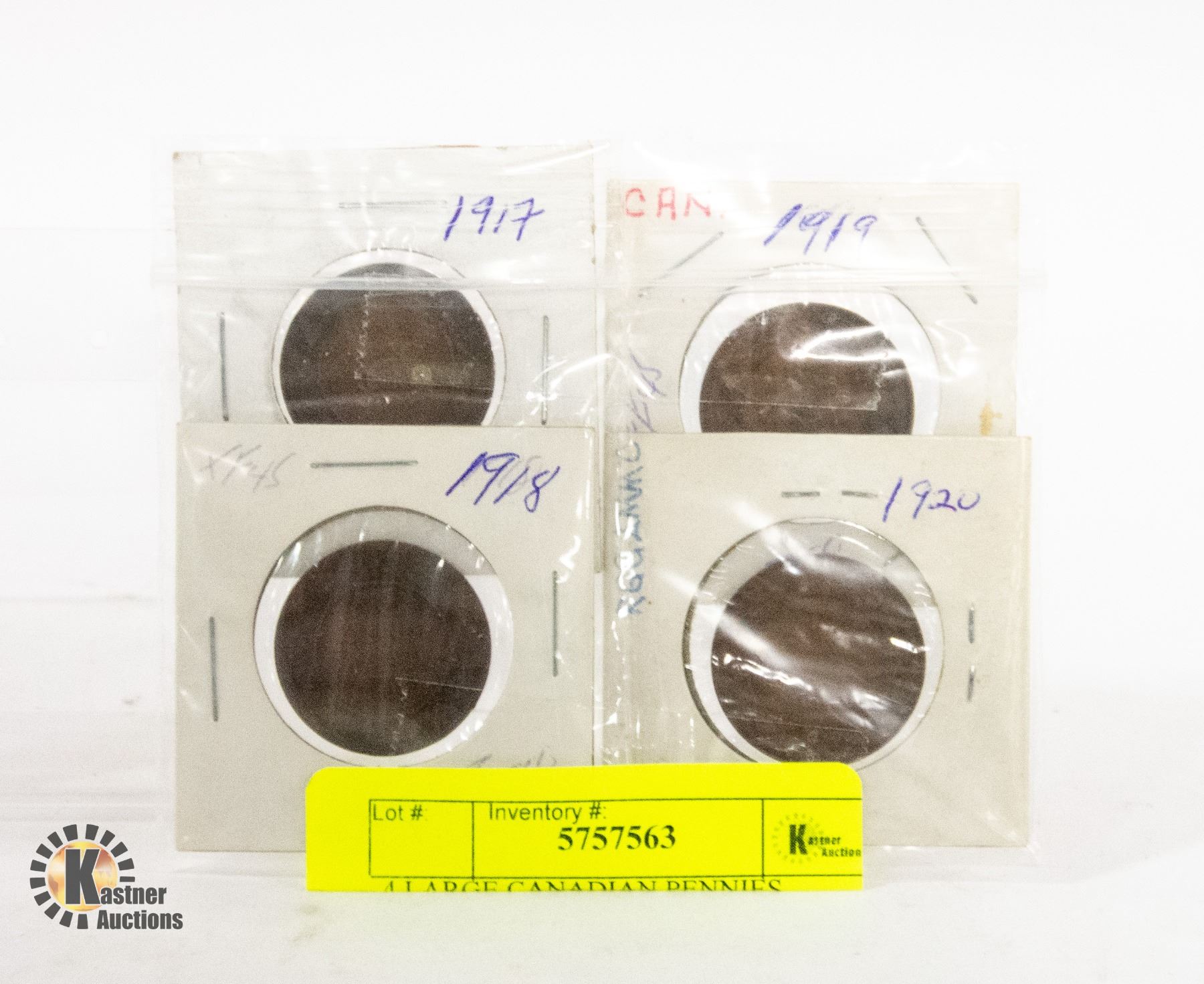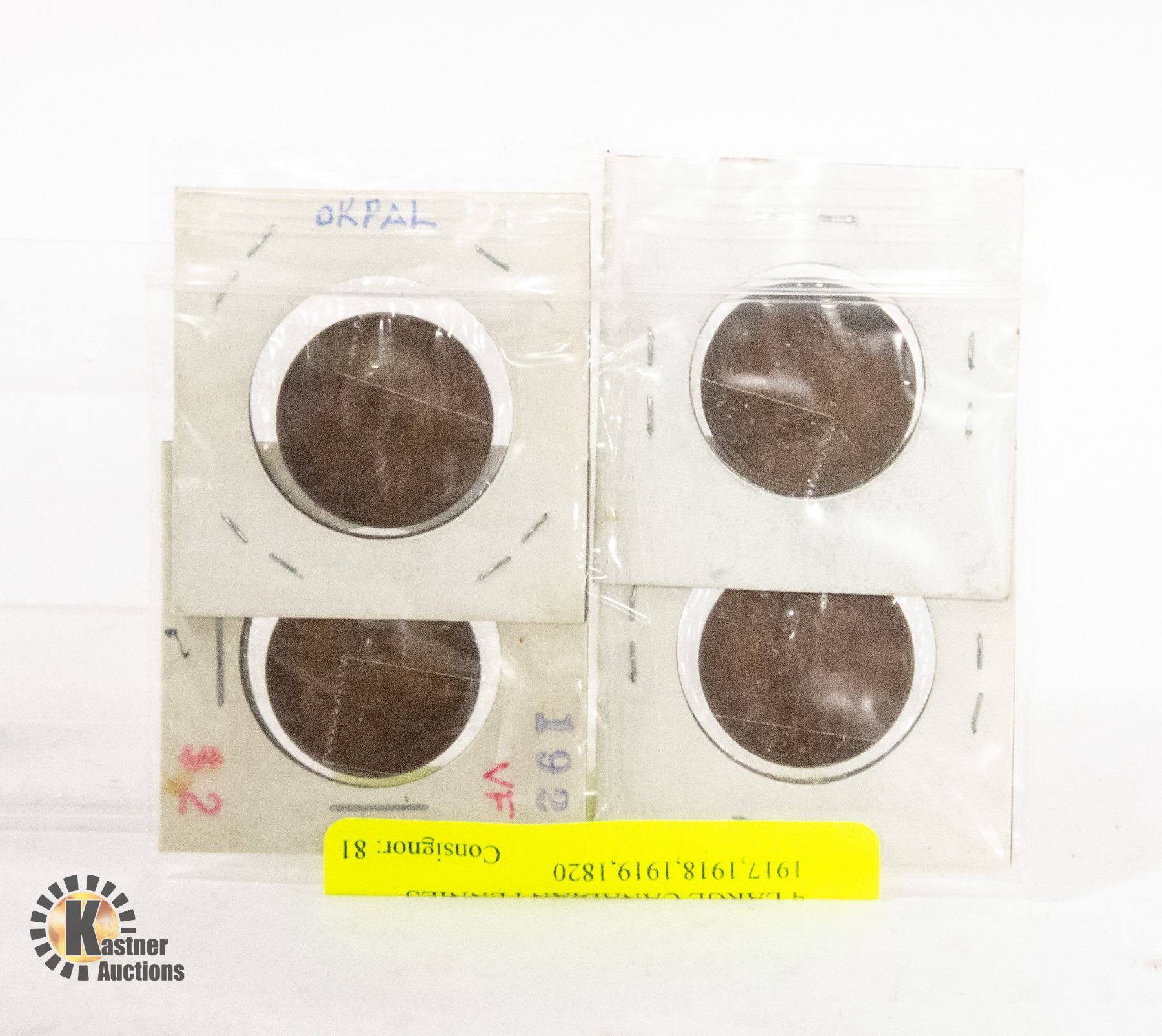 4 LARGE CANADIAN PENNIES 1917,1918,1919,1820