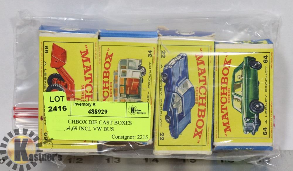 4 MATCHBOX DIE CAST BOXES 22,34,64,69 INCL VW BUS