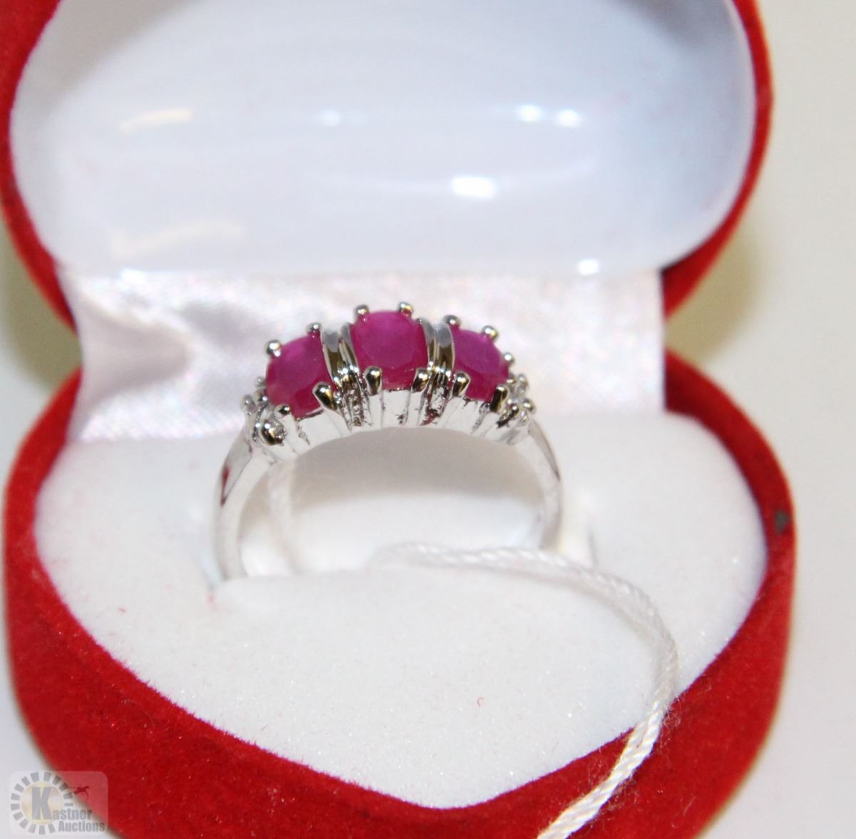 #4)NATURAL RUBY & CZ.925 SILVER RING SIZE 6
