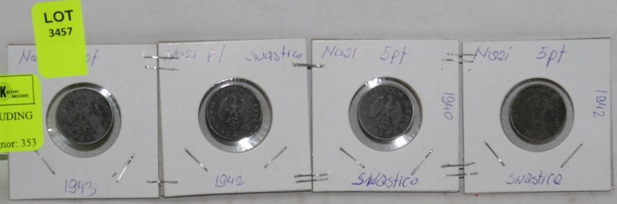 4 NAZI 5-PFENNIG COINS INCLUDING 1940-1943