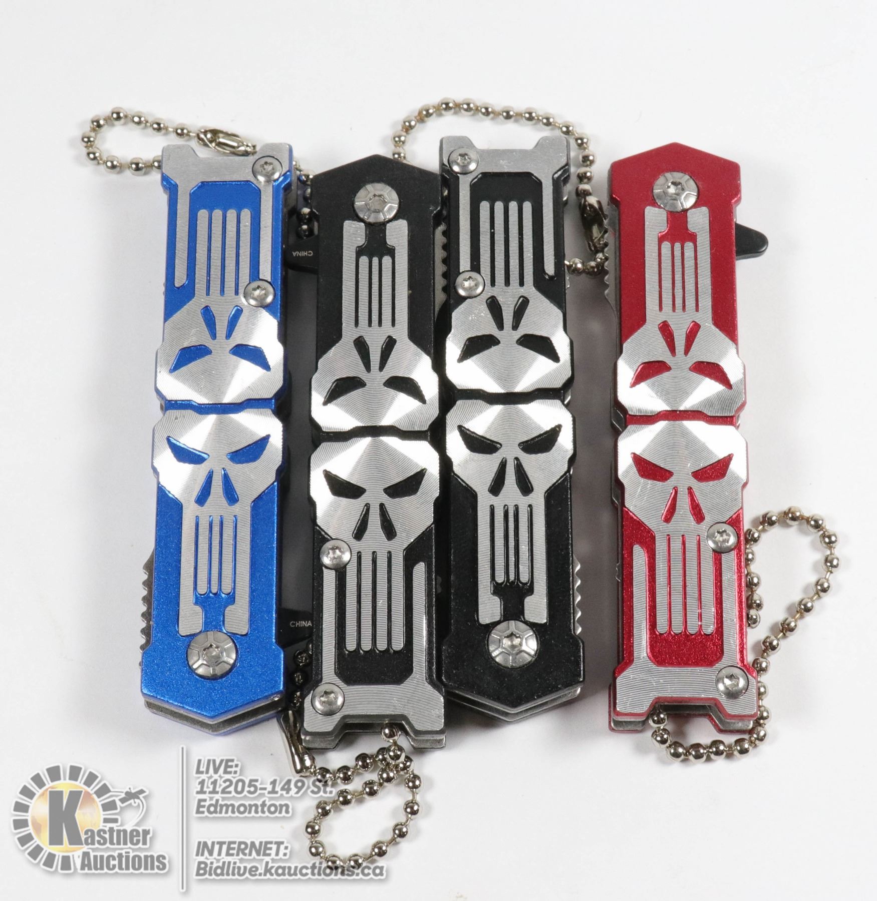 4 NEW MINI SKULL KNIVES - 2 BLACK, 1 RED, 1 BLUE