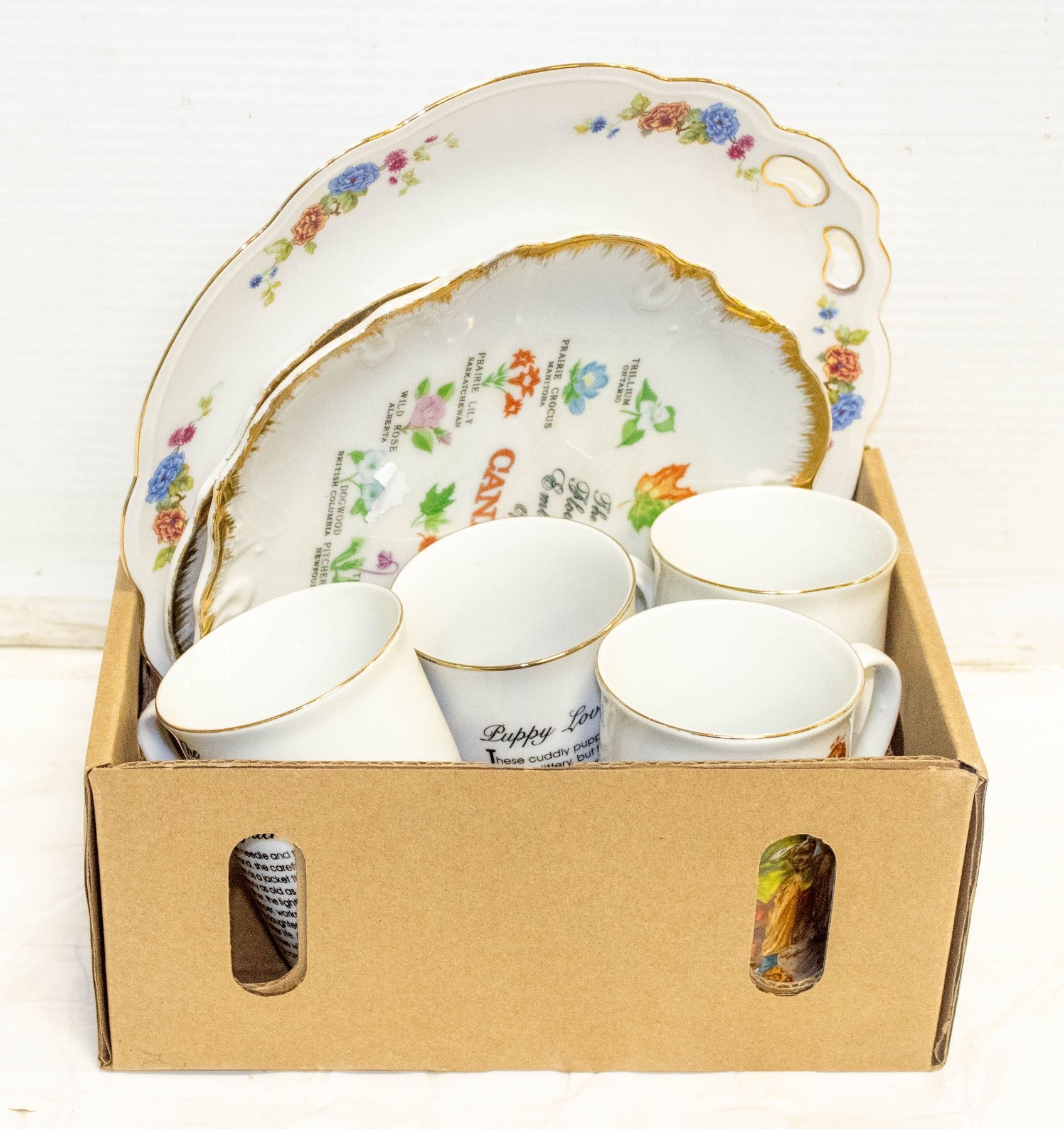4 NORMAN ROCKWELL VINTAGE MUGS, 1 FLOWER EMBLEMS