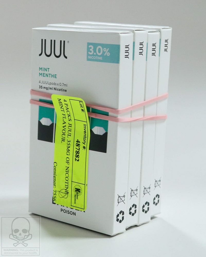 4 PACKS JUUL 35MG OF NICOTINE MINT FLAVOUR.