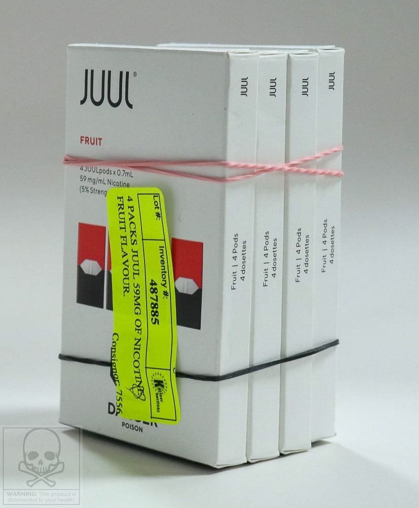 4 PACKS JUUL 59MG OF NICOTINE FRUIT FLAVOUR.