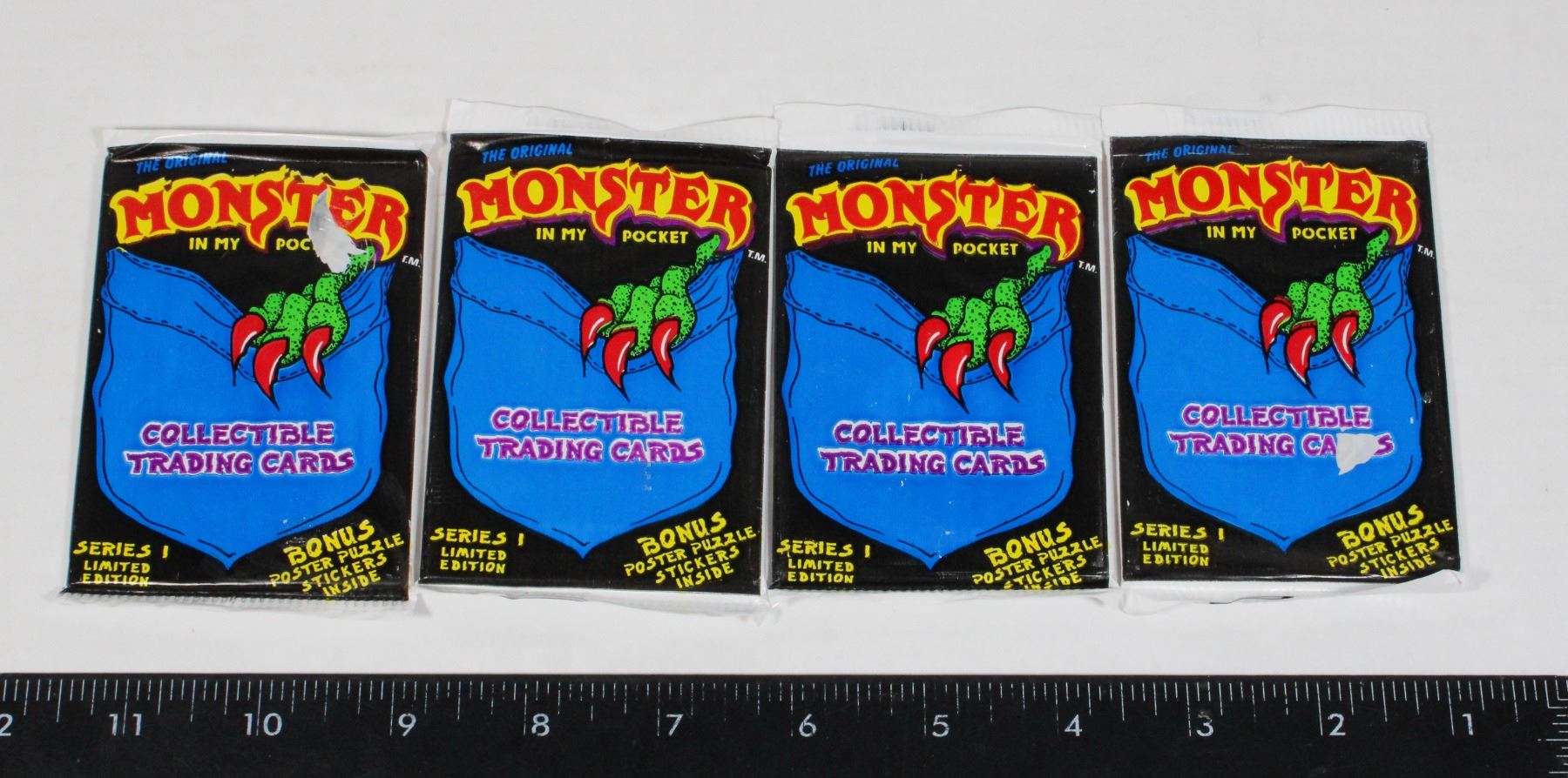 4 PACKS O FMONSTER IN MY POCKET TRADING CARDS 1991