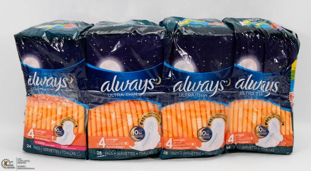 4 PACKS OF ALWAYS ULTRA THIN OVERNIGHT PADS