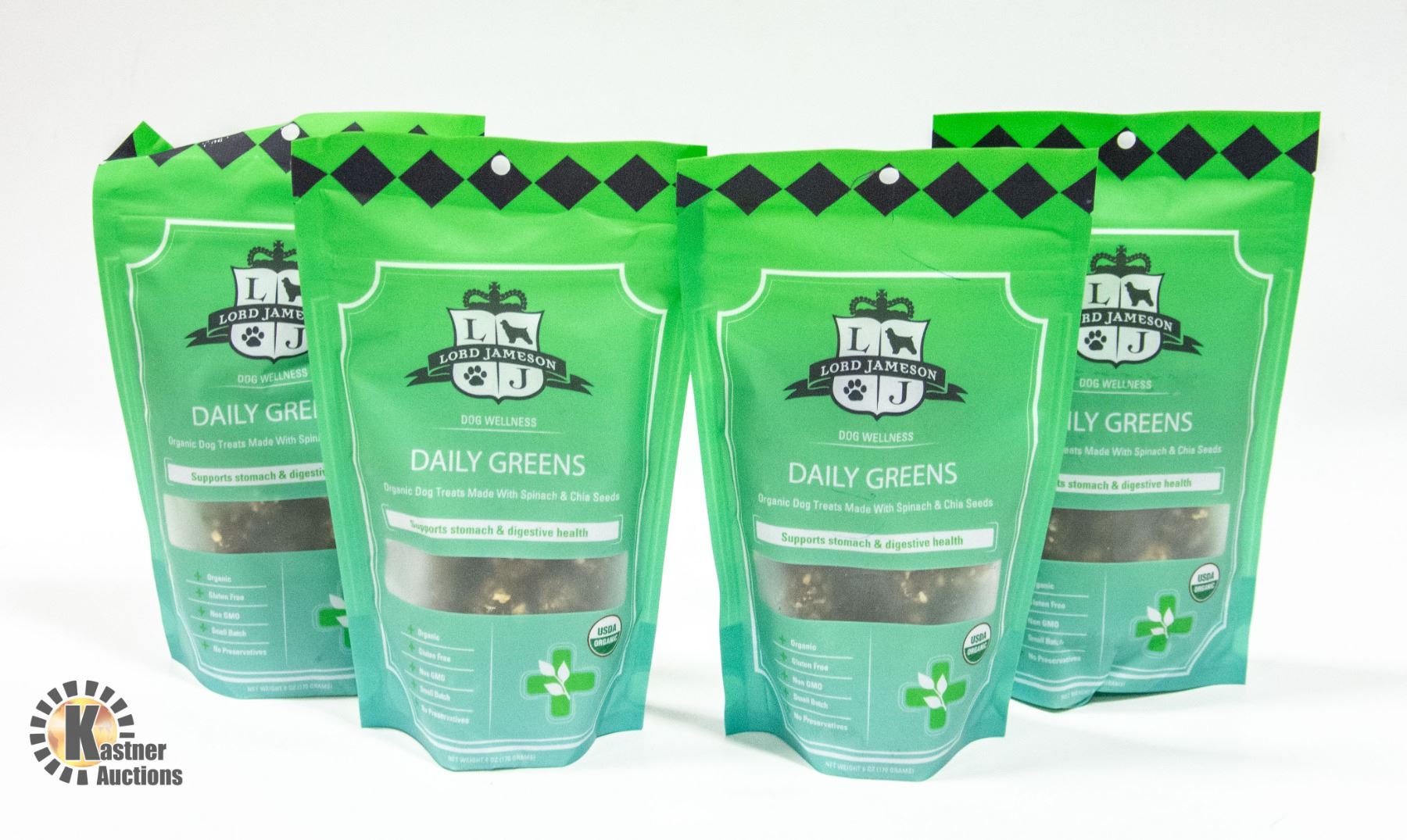 4 PACKS OF ORGANIC DOG TREATS DAILY GREEN 2/6/23