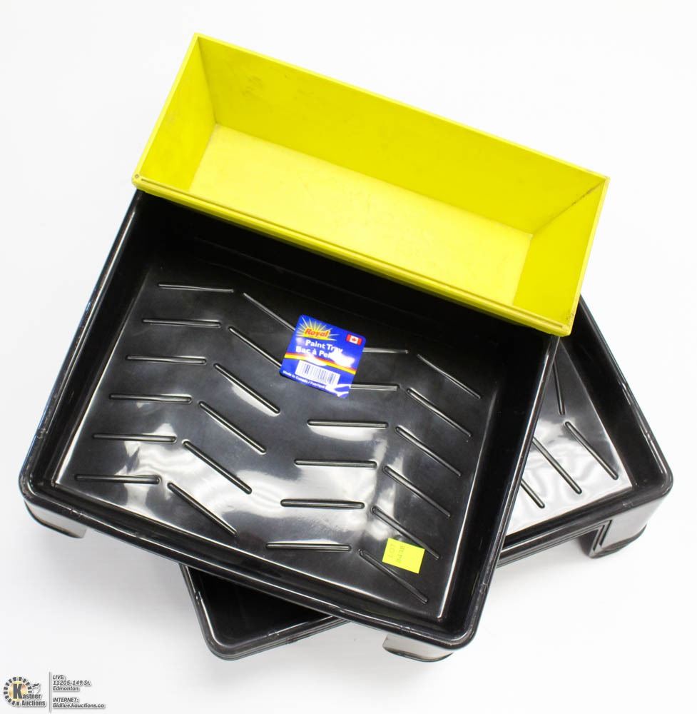 4 PAINT TRAYS AND A MUD PAN