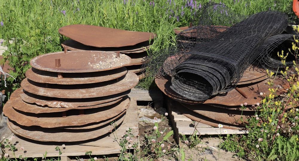 4 PALLETS OF CIRCULAR METAL HOLE COVERINGS