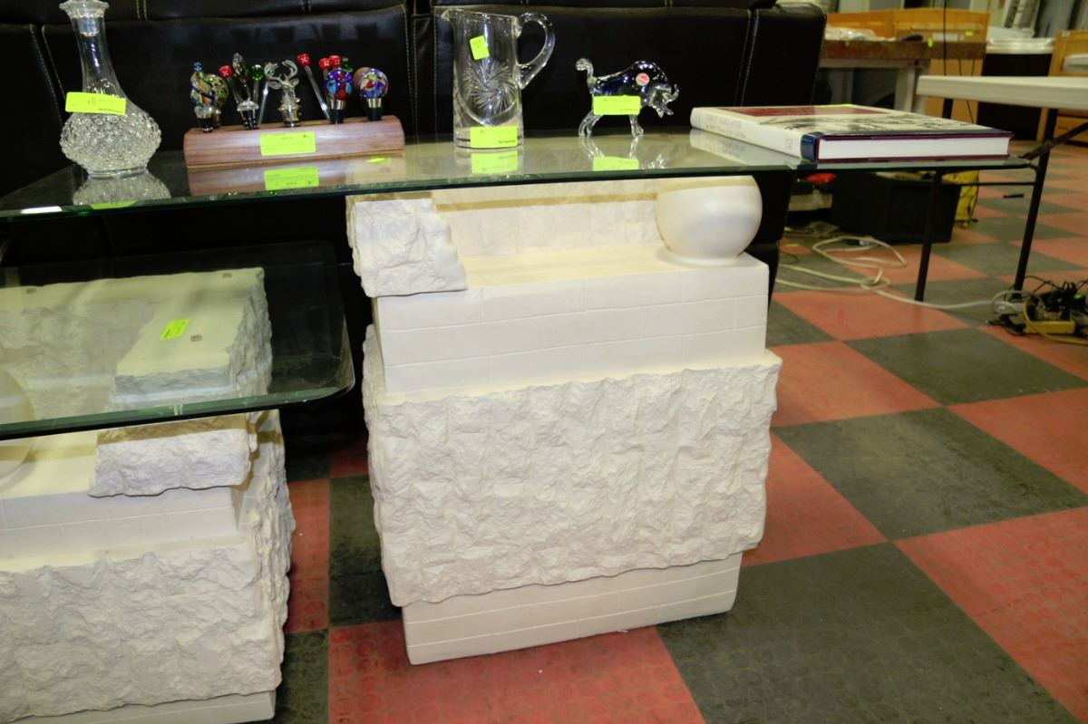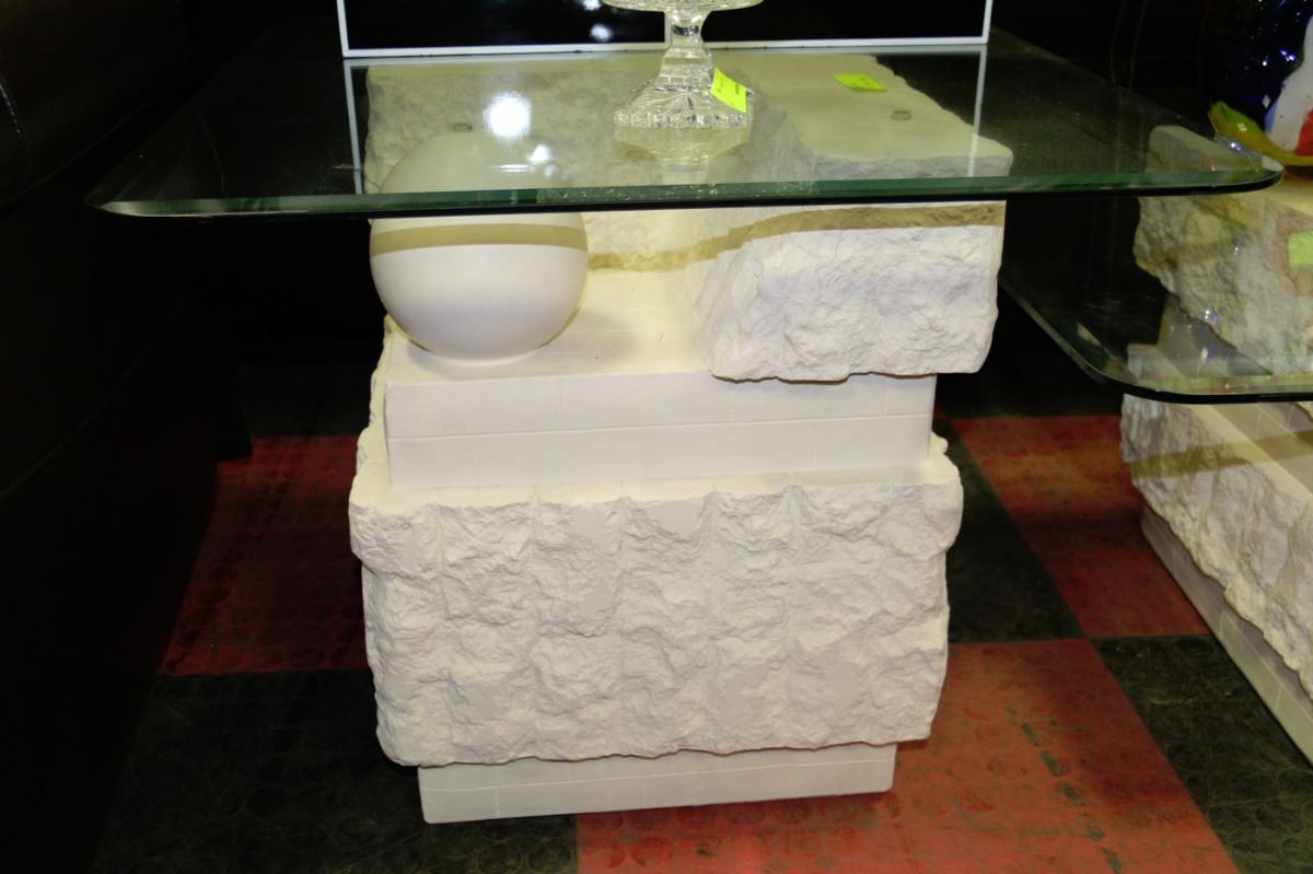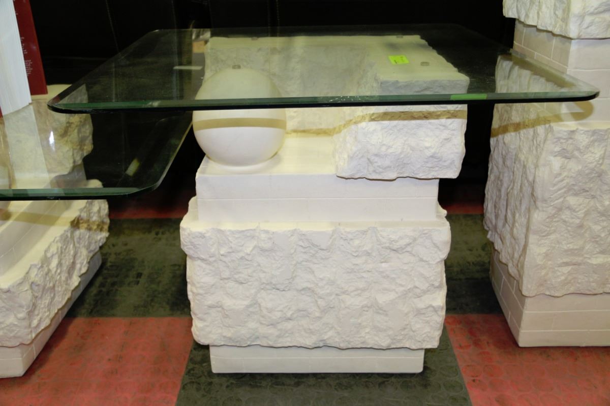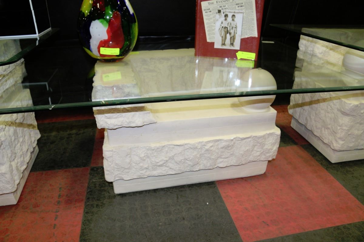 4 PC STONE STYLE GLASS TOP COFFEE TABLE SET