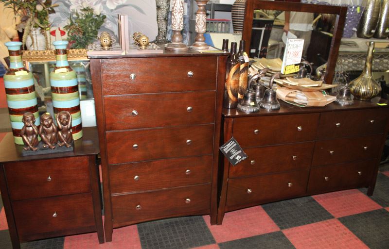DRESSER, MIRROR, 5 DRAWER STAND UP DRESSER, & 2 DRAWER NIGHTSTAND