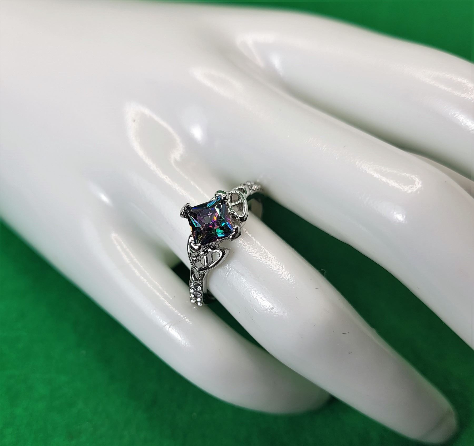 MYSTIC TOPAZ WITH CLEAR CZ CRYSTALS ON THE SHOULDERS, STAMPED 925, RING SIZE 8.***ITEM(S) LOCATED IN LETHBRIDGE ALBERTA