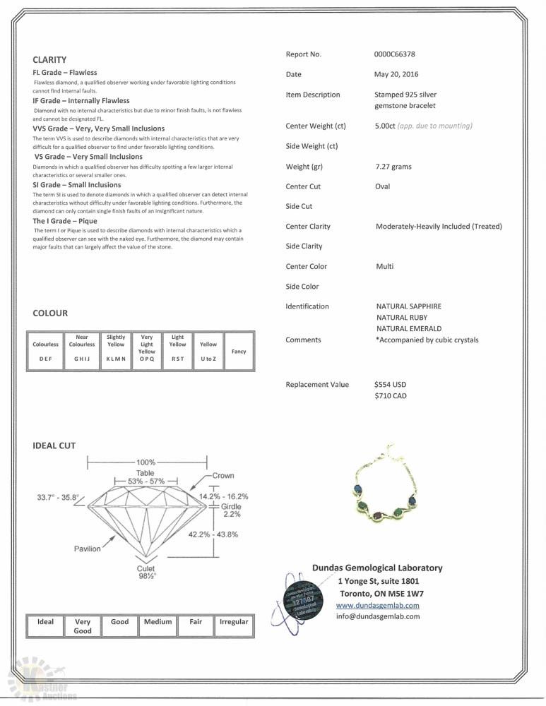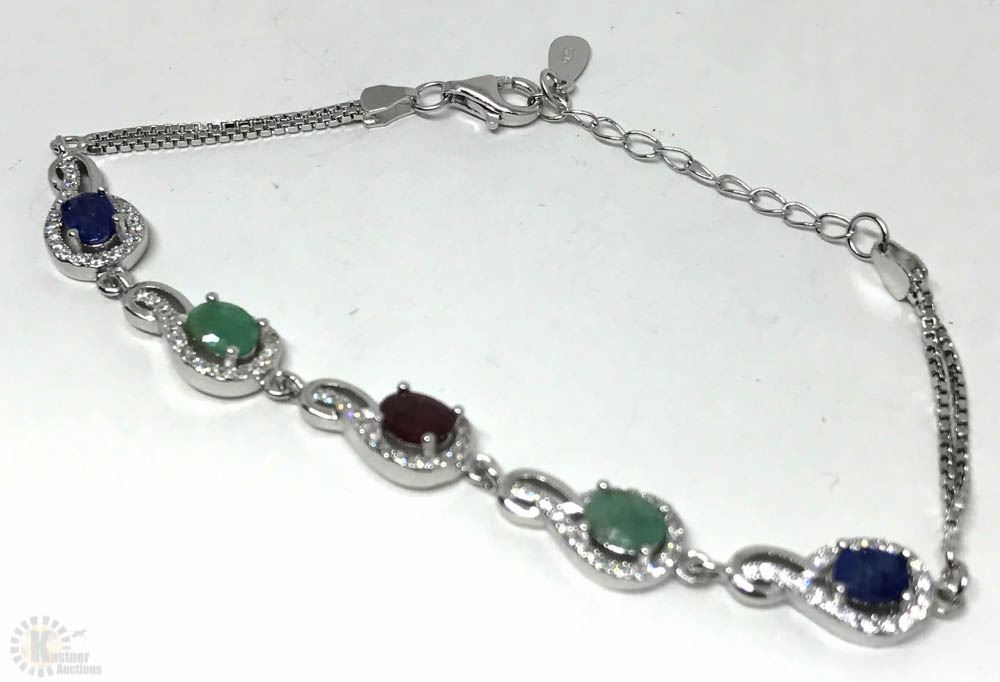 WITH SAPPHIRE,RUBY,EMERALD(5.0CT) & CUBIC CRYSTALS W/ COA - SUGGESTED REPLACEMENT VALUE $710.00