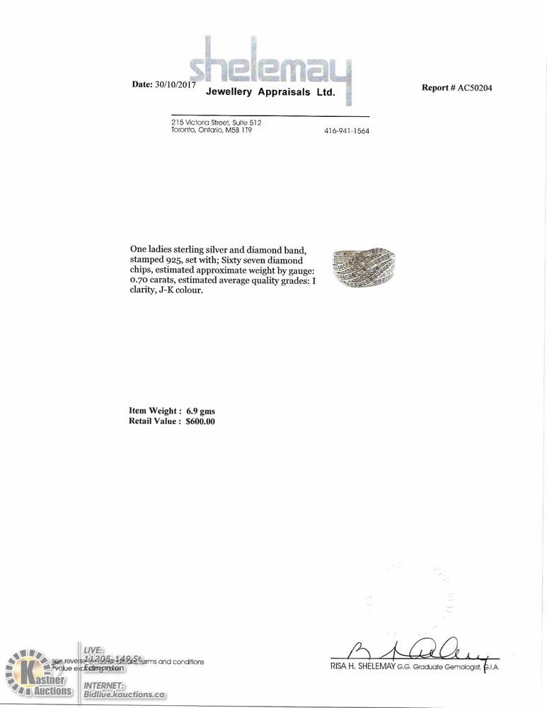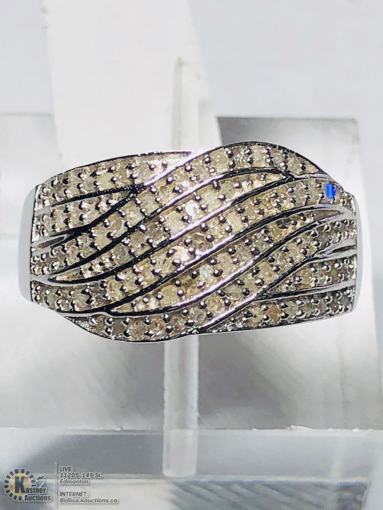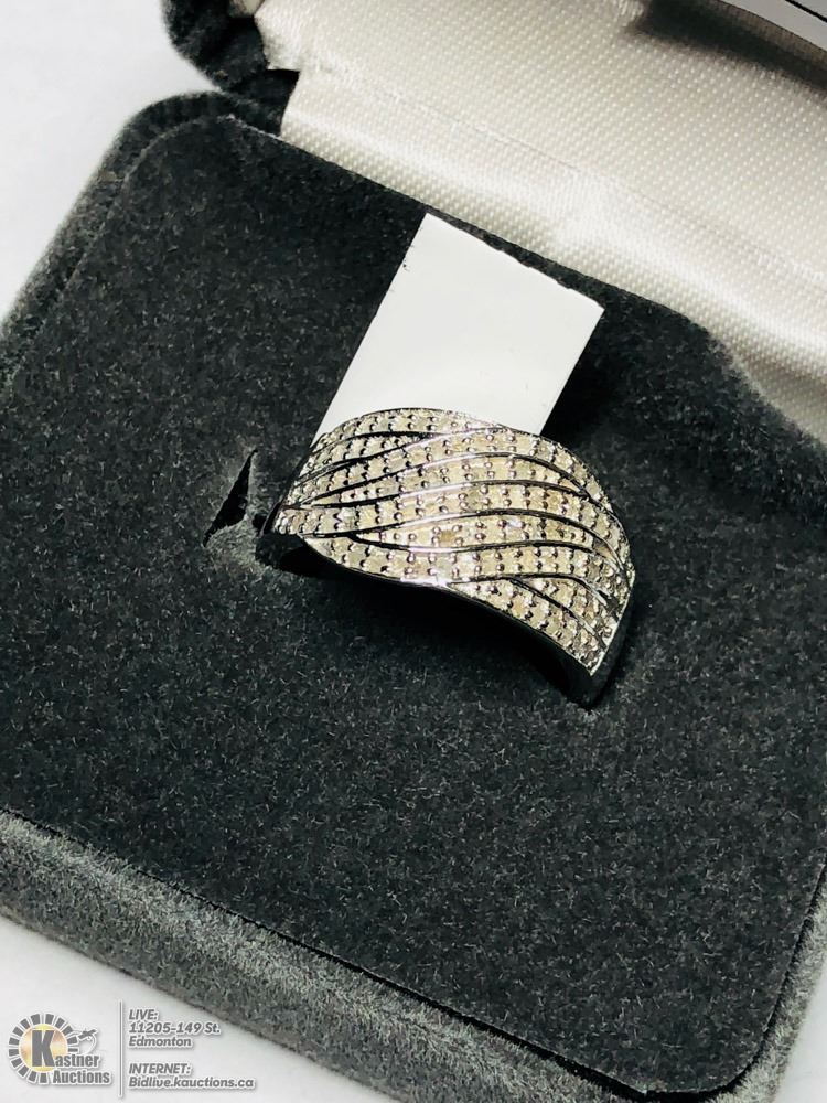 54-JP135 - STERLING SILVER DIAMOND (0.70CT) BAND RING, SIZE 7 (6.9G) W/COA. SUGGESTED RETAIL VALUE $600.00. JEWELLERY