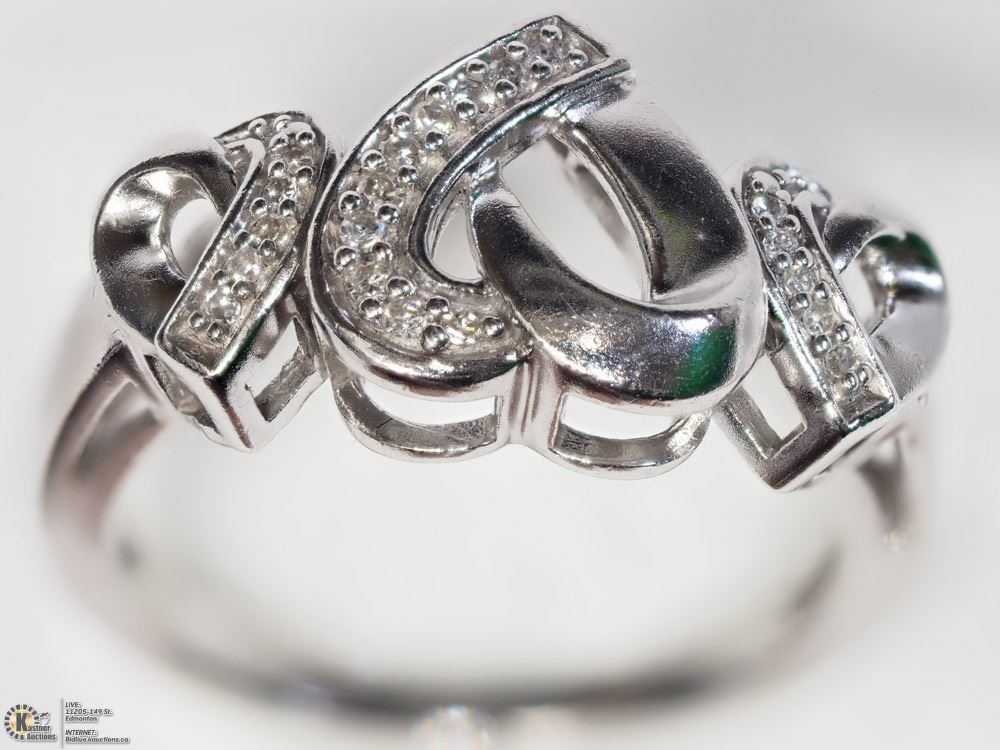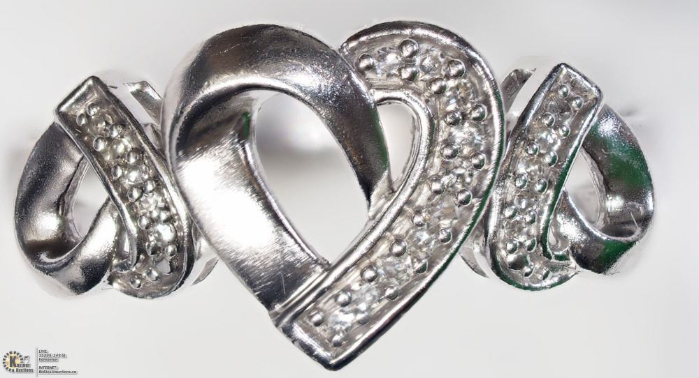 4 - BA25 - STERLING SILVER DIAMOND HEART SHAPED RING SIZE 6.75