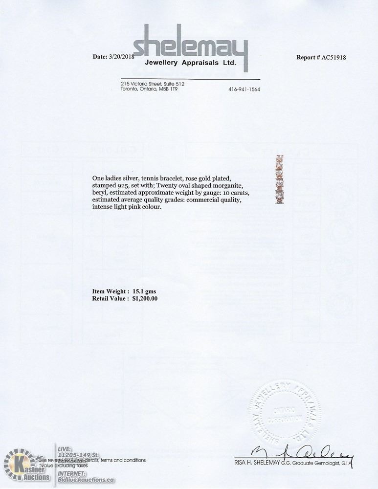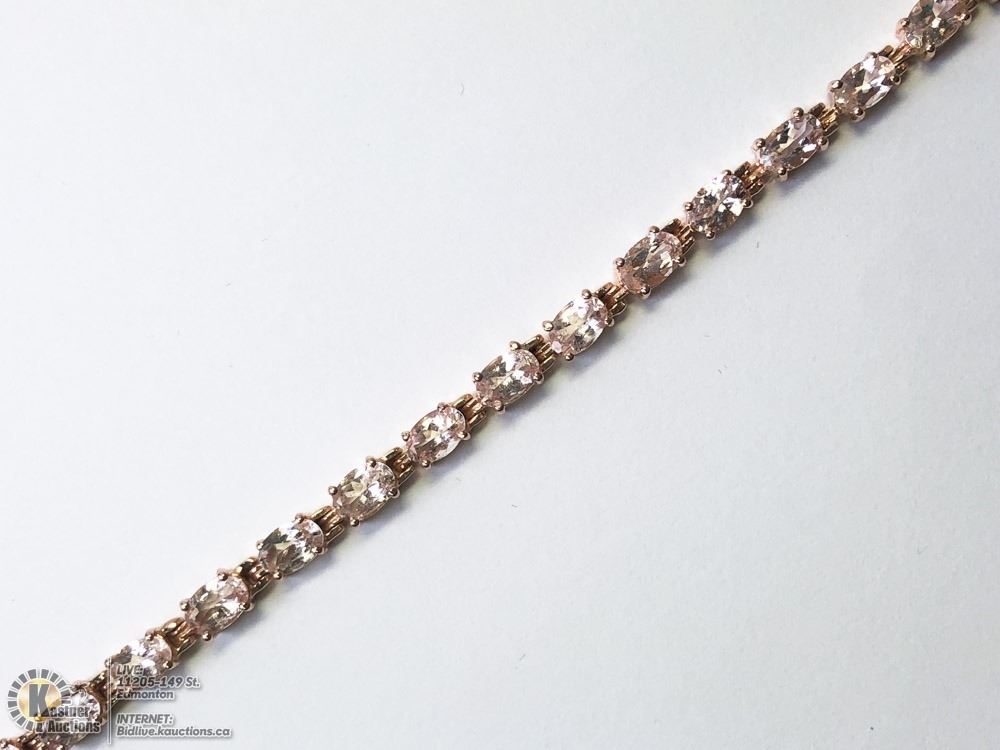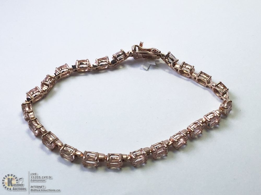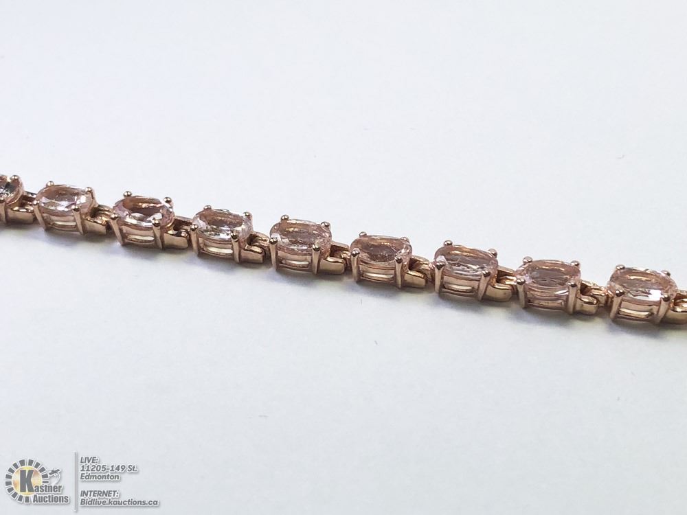 STERLING SILVER GOLD PLATED MORGANITE (10CT) BRACELET (6.9INCH) (15.1GRMS) W/COA. SUGGESTED RETAIL VALUE $1200.00 - 54-LS123. JEWELLERY