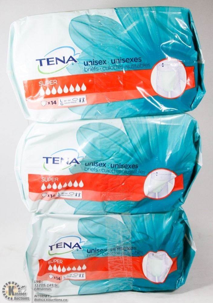 4 TENA SUPER UNISEX BRIEFS SIZE LARGE.