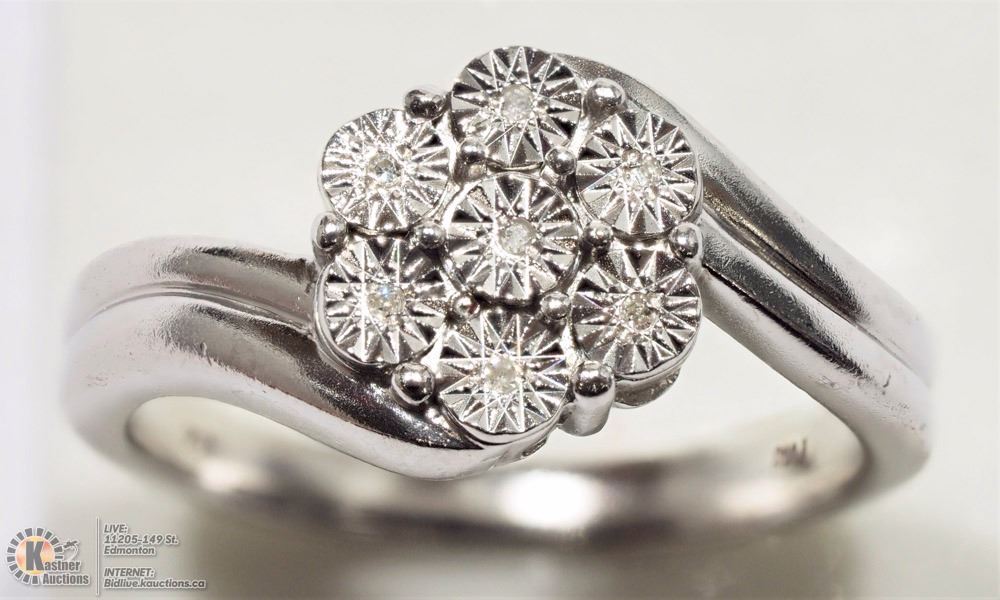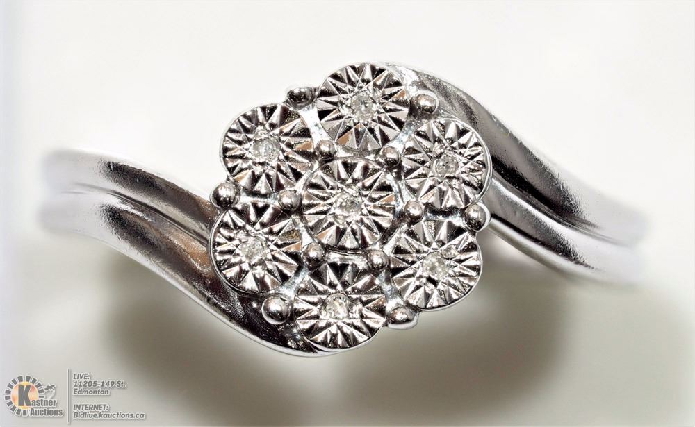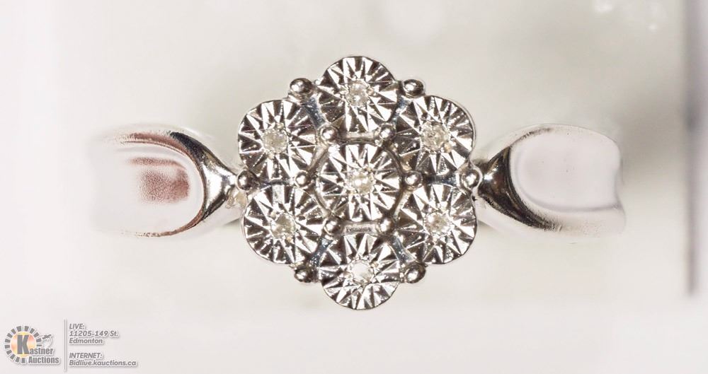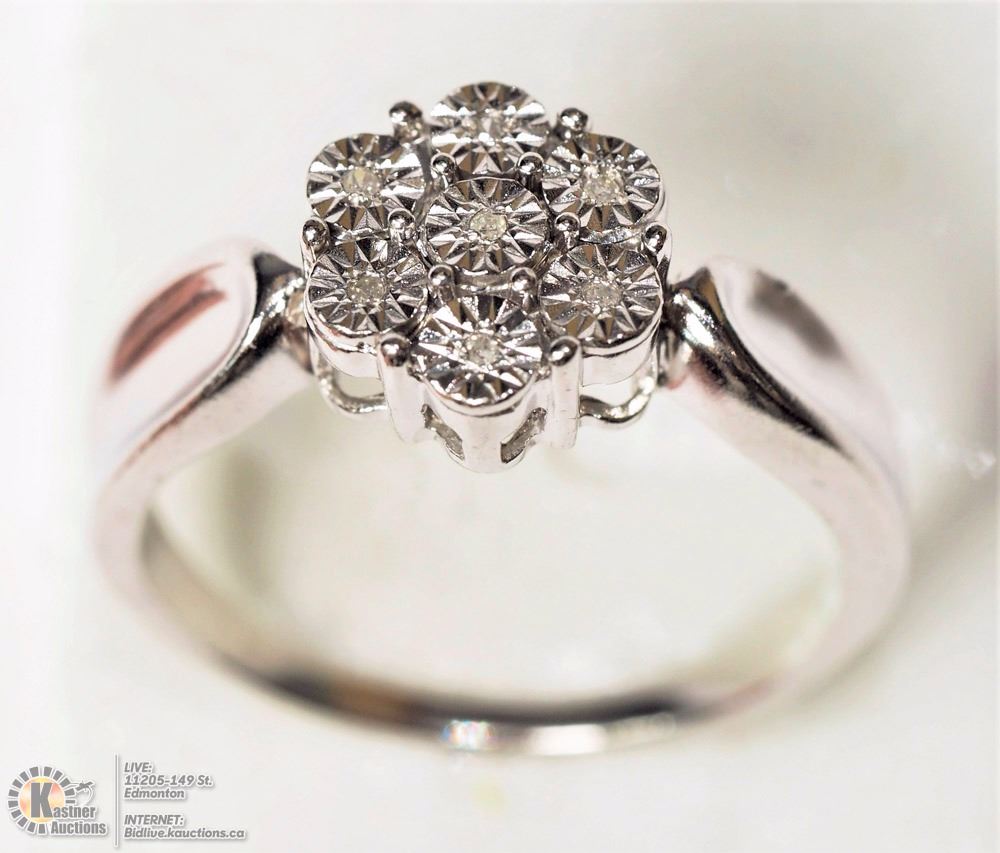 4-NT51-TWO STERLING SILVER 7 DIAMOND FLORAL RINGS SIZES 7 & 7.5. JEWELLERY
