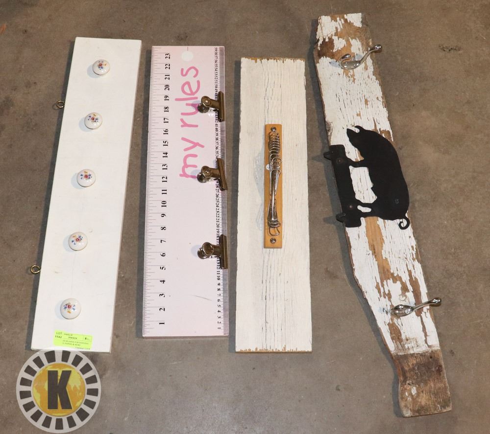 4 WOODEN BOARDS FOR HANGING CLOTHES, PAPERS & MORE