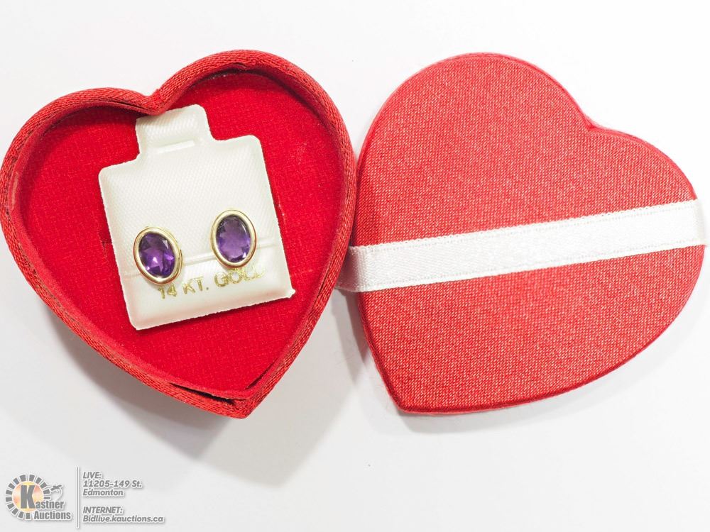 40-NT91- 14K GOLD GENUINE AMETHYST (FEBRUARY BIRTHSTONE) EARRINGS. JEWELLERY