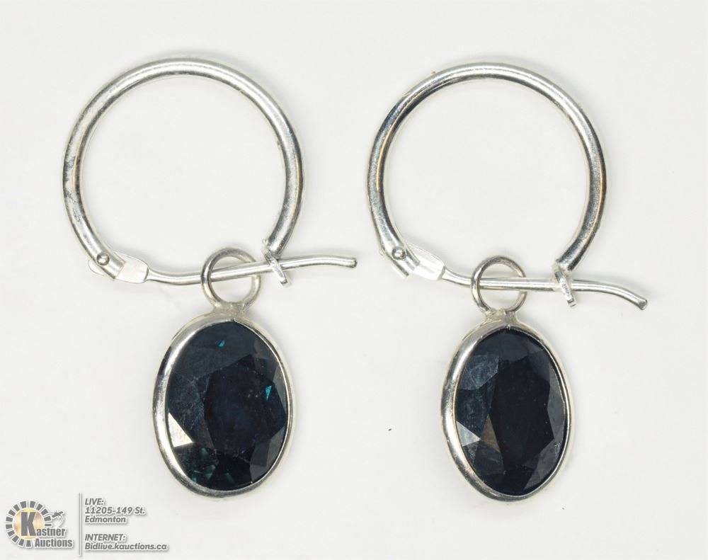 40 - GS86- 14KT WHITE GOLD ENHANCED SAPPHIRE (3.60CTS) EARRINGS. JEWELLERY.