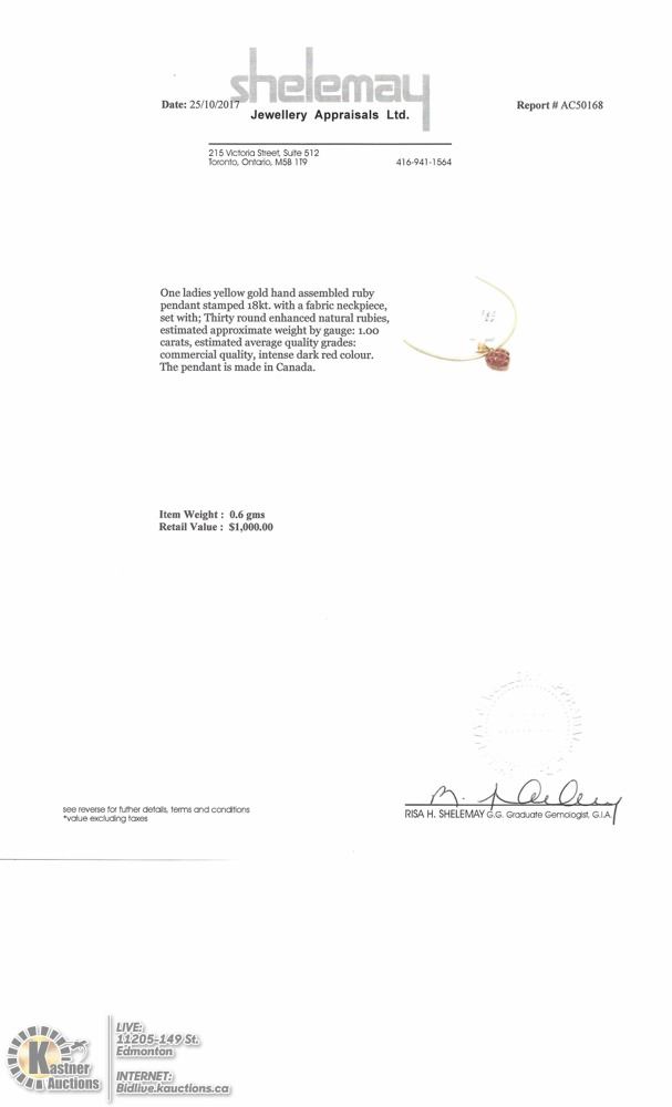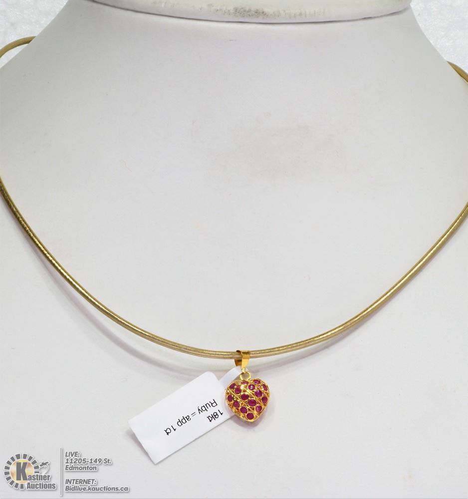 WITH 30 NATURAL RUBY(1.00CT) WITH HIGH FASHION CORD .. LS14 - 40- 18KT GOLD PUFF HEART SHAPED 2 SIDED PENDANT WITH 30 NATURAL RUBY(1.00CT) WITH HIGH FASHION CORD, SUGGESTED RETAIL VALUE $1000.00