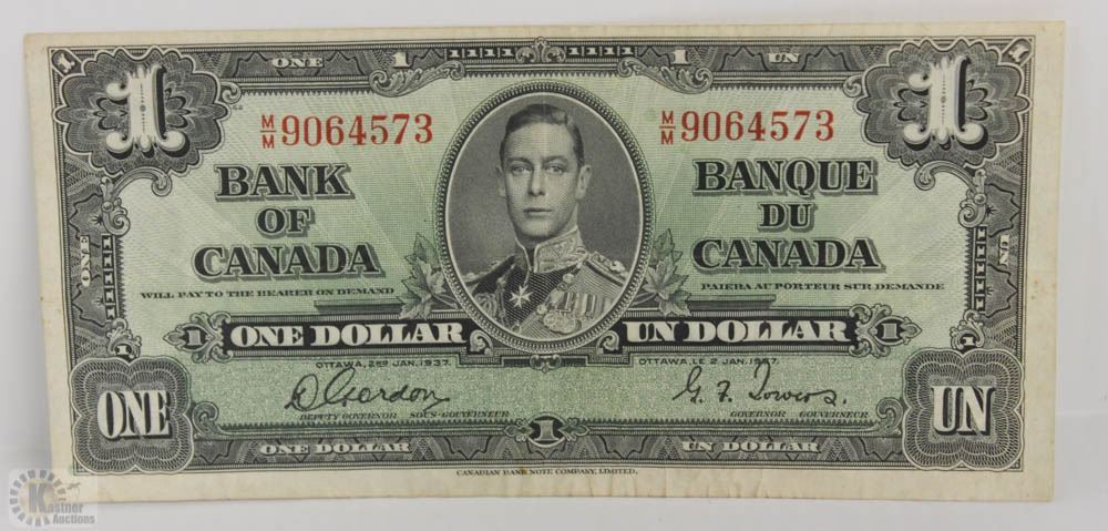 40) BANK OF CANADA $1 1937 WITH SERIAL NO.