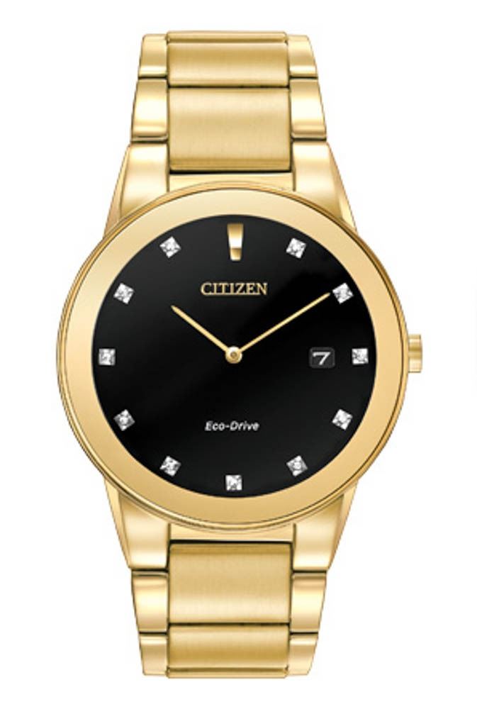 CITIZEN ECO-DRIVE AXIOM BLACK DIAL GOLD-TONE DIAMOND MEN'S WATCH