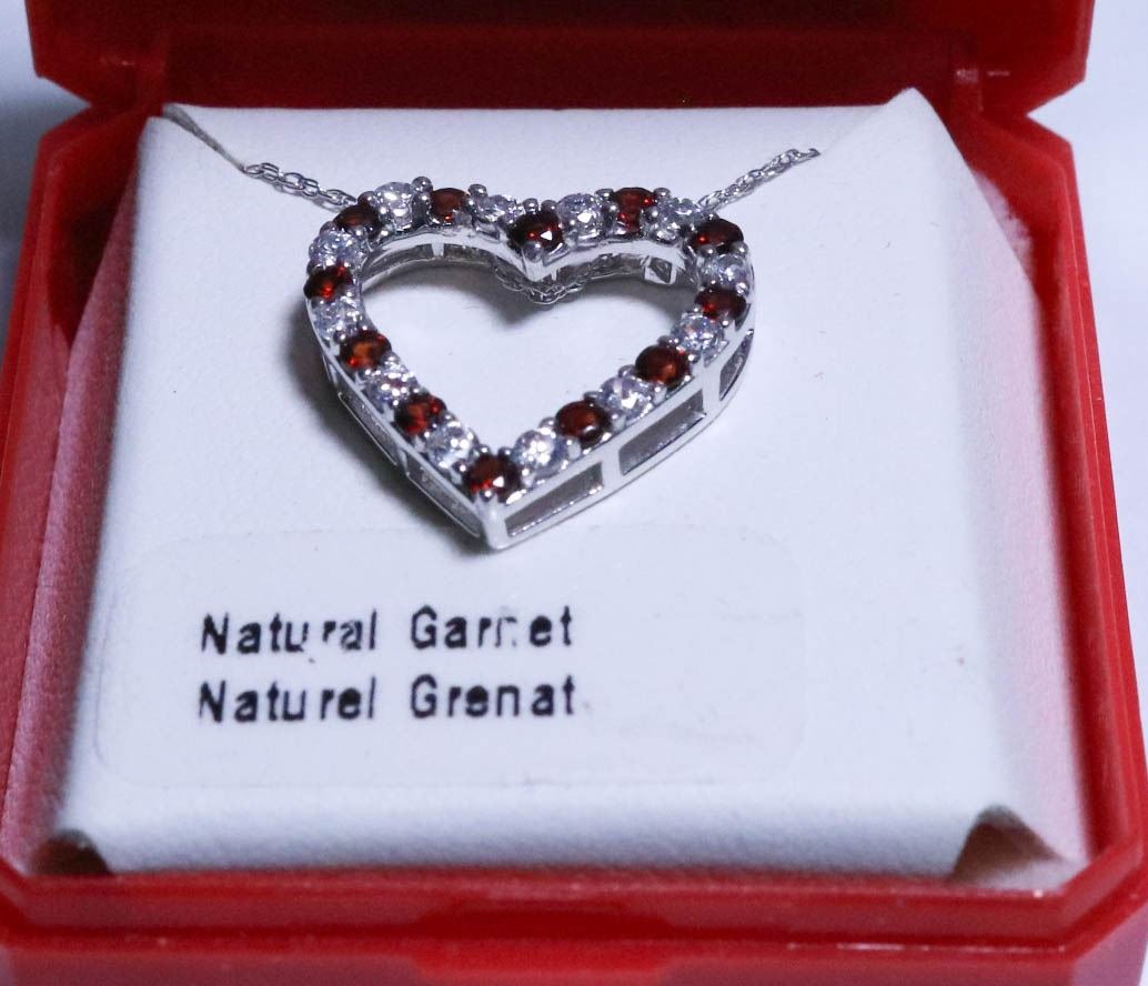 40) SILVER NATURAL GARNET 20" NECKLACE, SUGGESTED