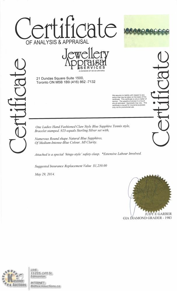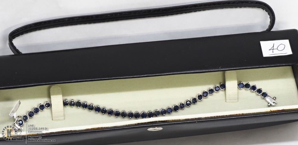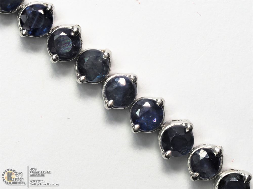 40-LS23- SILVER TENNIS STYLE BLUE SAPPHIRE BRACELET WITH 41 GENUINE BLUE SAPPHIRES (APPROX. 20CT). SUGGESTED REPLACEMENT VALUE $1250.00. JEWELLERY