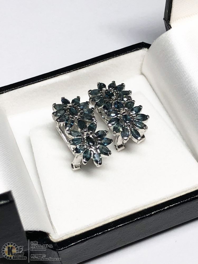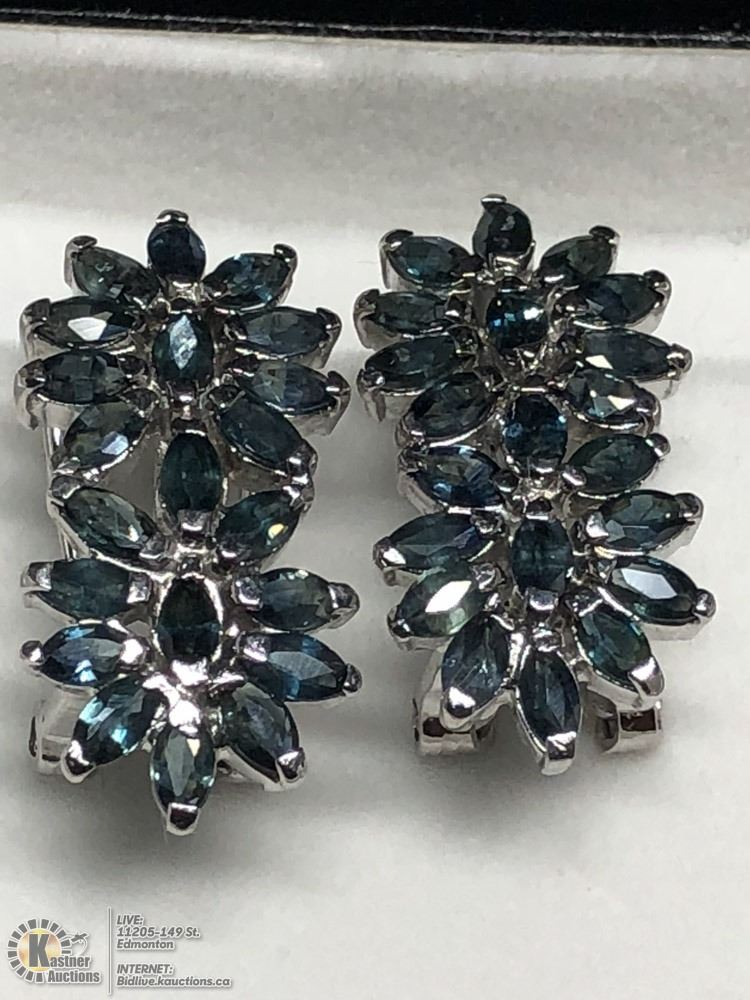 40-JP122 - STERLING SILVER BLUE SAPPHIRE EARRINGS. JEWELLERY