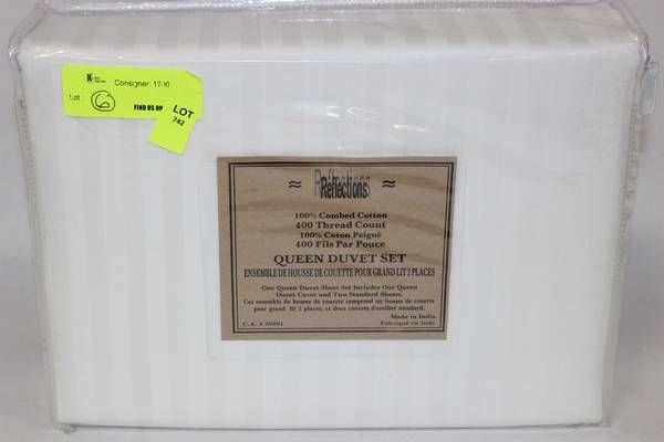 400 THREAD COUNT QUEEN DUVET SET WHITE