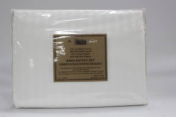 400 THREAD COUNT WHITE STRIPE KING DUVET SET
