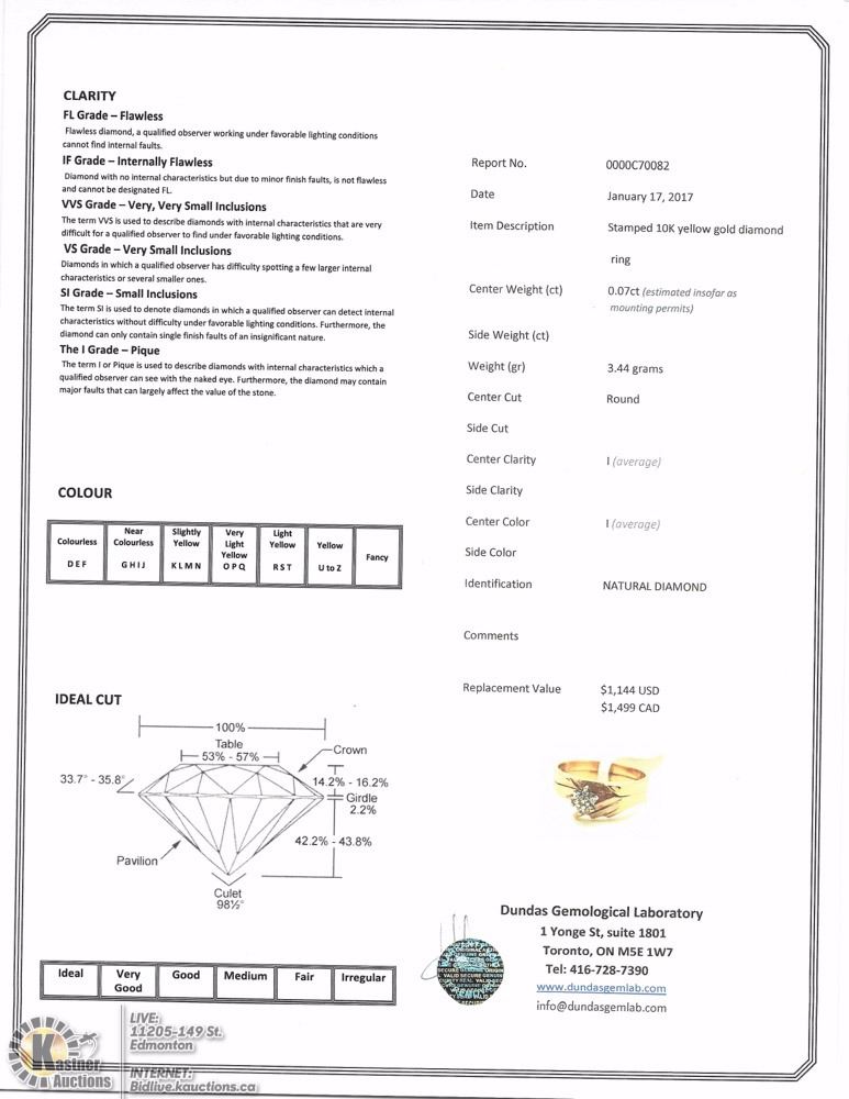 41 - GS15: 10KT YELLOW GOLD DIAMOND (0.07CT) RING SIZE: 5 W/ COA - SUGGESTED REPLACEMENT VALUE $1,499.00