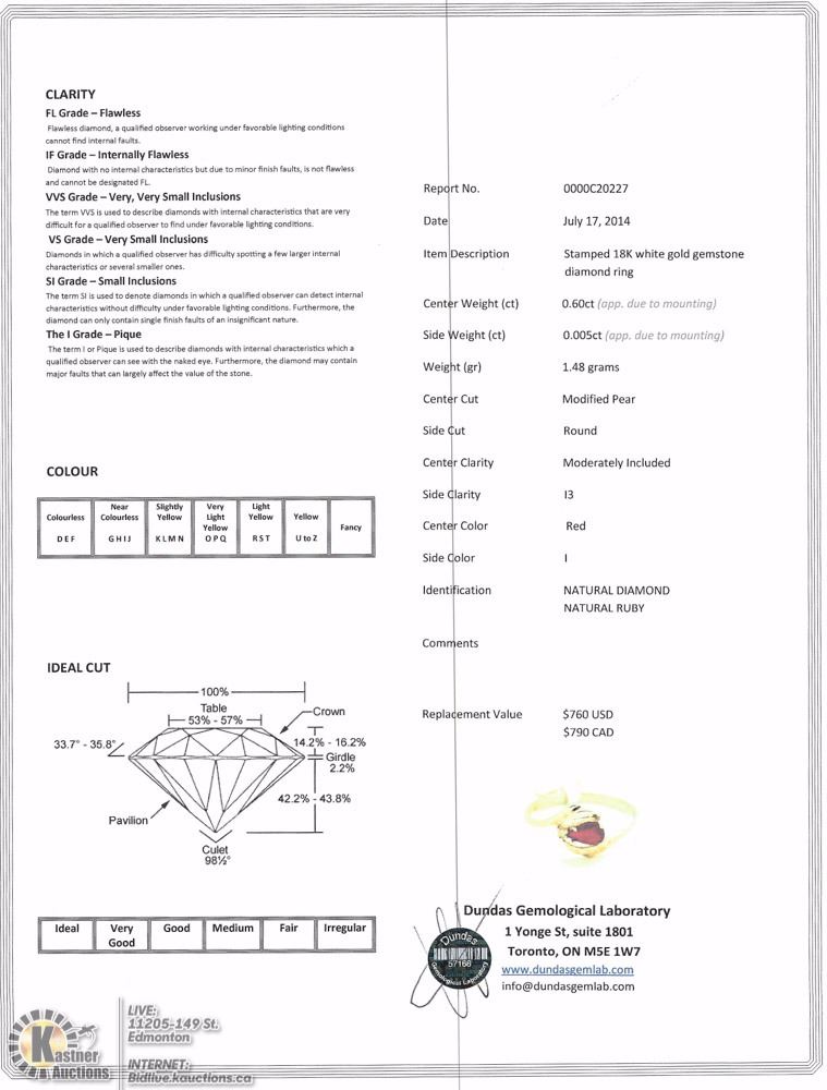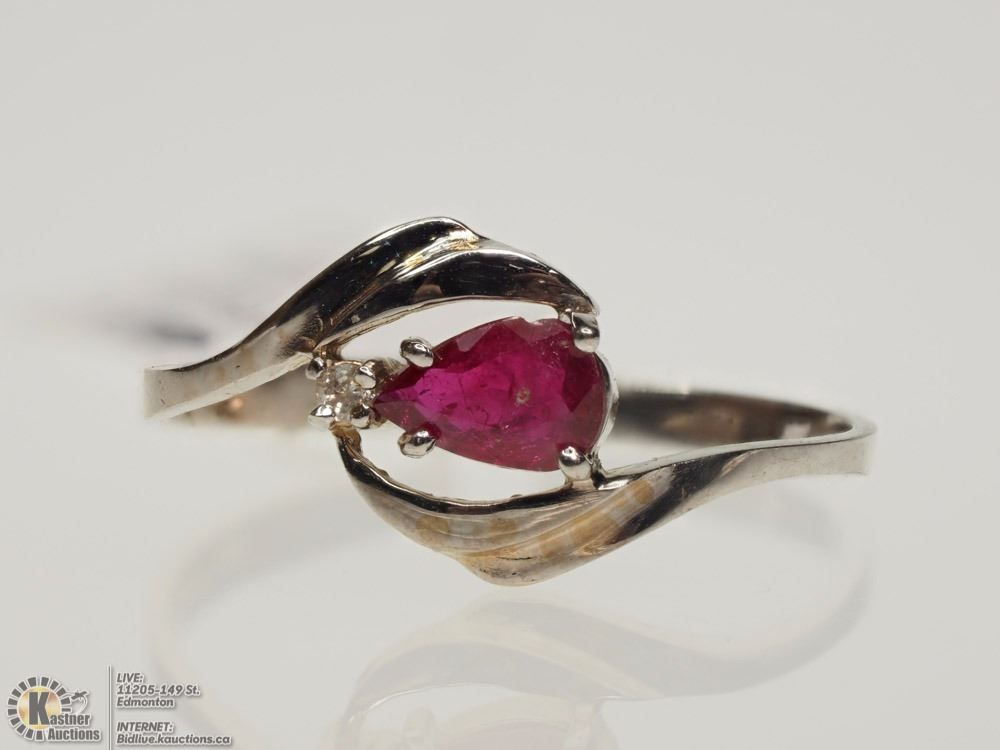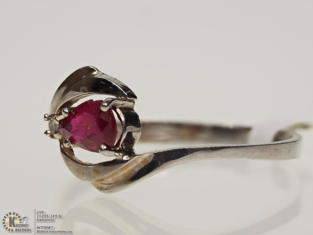 1-NT-41: 18K WHITE GOLD RUBY (0.60CT) AND DIAMOND RING. SIZE: 6 W/ COA - SUGGESTED REPLACEMENT VALUE $790.00