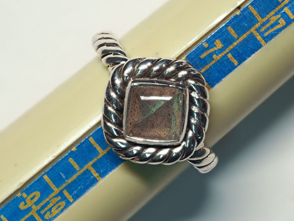 41 - JM37 - STERLING SILVER LABRADORITE RING (SIZE 8). JEWELRY