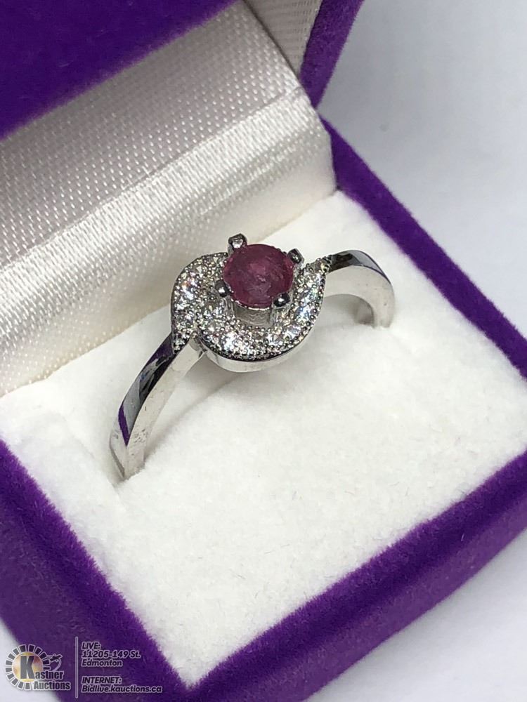 41-JP122 - STERLING SILVER RUBY RING. JEWELLERY