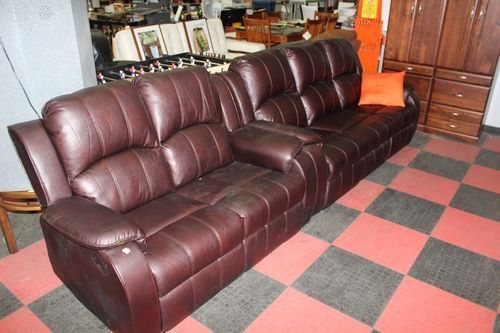 415-126-22BROWN LEATHER RECLINGING SOFA & LOVESEAT