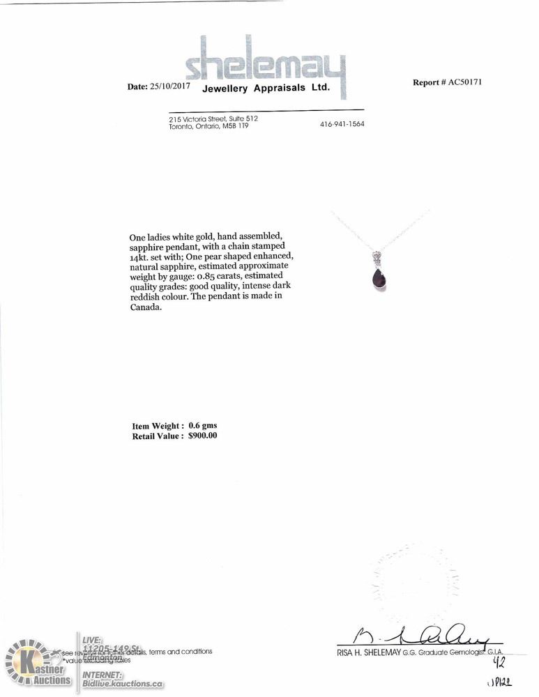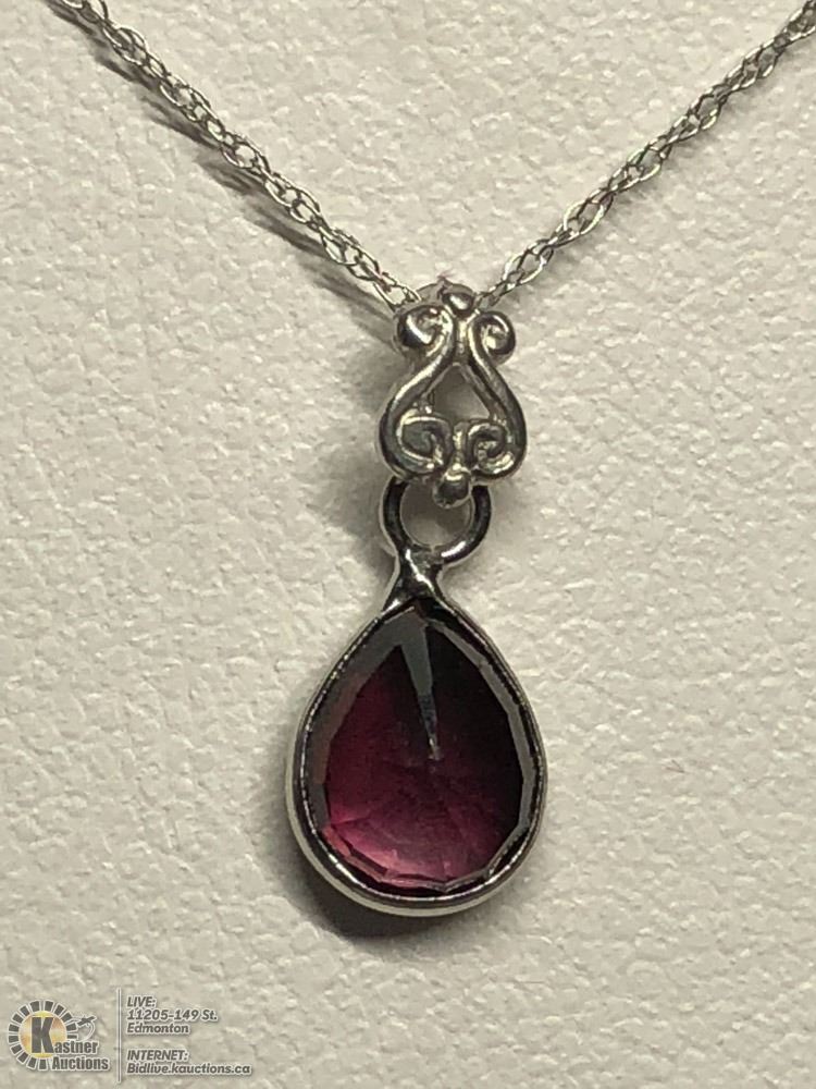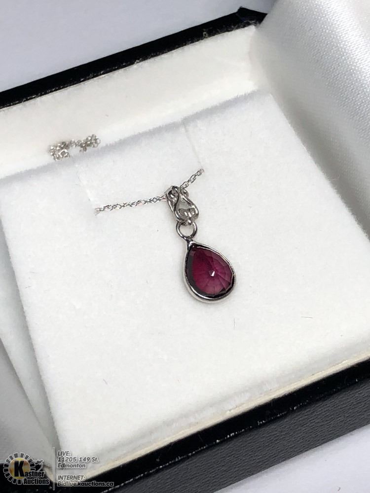 42-JP122 - 14KT GOLD CHAIN ENHANCED DARK REDDISH COLOR SAPPHIRE(0.85CT) PENDANT NECKLACE W/COA. SUGGESTED RETAIL VALUE $900. JEWELLERY