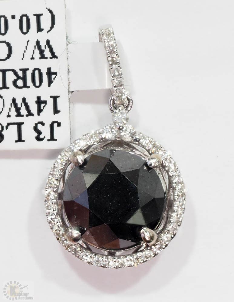 14KT WHITE GOLD BLACK DIAMOND (2.76CT) & WHITE DIAMOND (0.21CT) PENDANT W/ COA - SUGGESTED REPLACEMENT VALUE $4,320.00