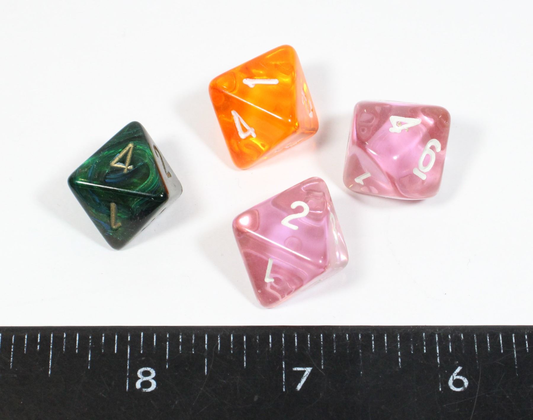 #428 LOT 4 VINTAGE GAME DICE PURPLE GREEN ORANGE