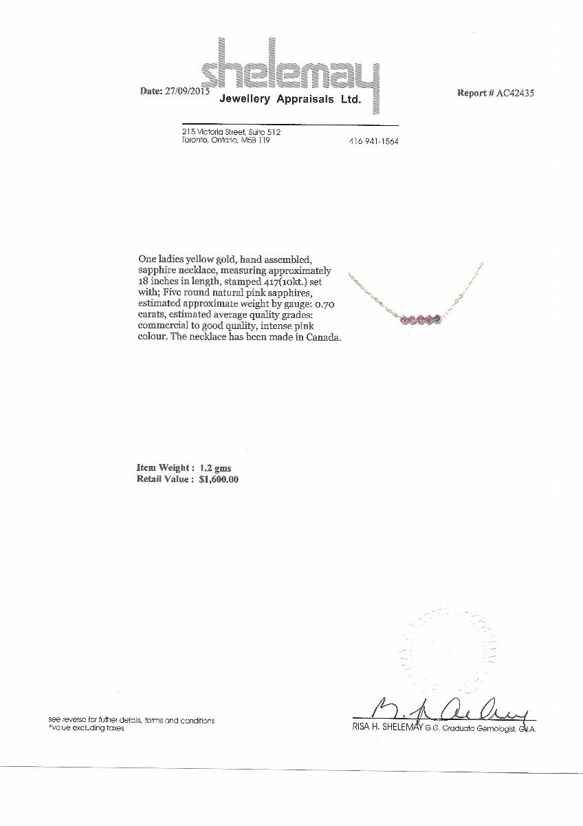 NECKLACE. W/ COA - SUGGESTED REPLACEMENT VALUE $1600.00