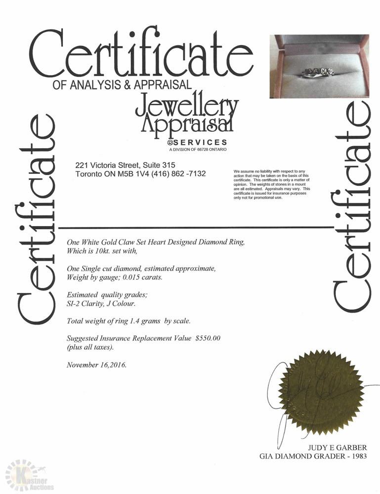 10KT WHITE GOLD DIAMOND HEART DESIGN RING W/ COA - SUGGESTED REPLACEMENT VALUE $550.00