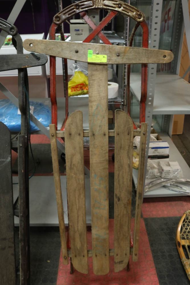 METAL FRAME W/ WOOD PLANKS, PULL-ALONG STYLE.