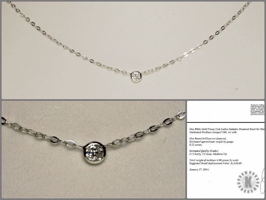 10K WHITE GOLD DIAMOND (0.21CT) SOLITAIRE NECKLACE - SUGGESTED REPLACEMENT VALUE $1,650.00