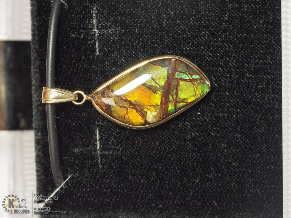 44-LS70 - 14K GOLD AMMOLITE PENDANT ON CORD (HANDCRAFTED IN CANADA). JEWELRY