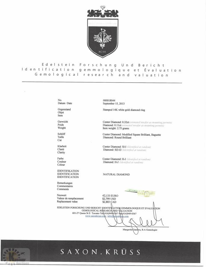 W/ COA - SUGGESTED REPLACEMENT VALUE $2,883.00 SIZE 6