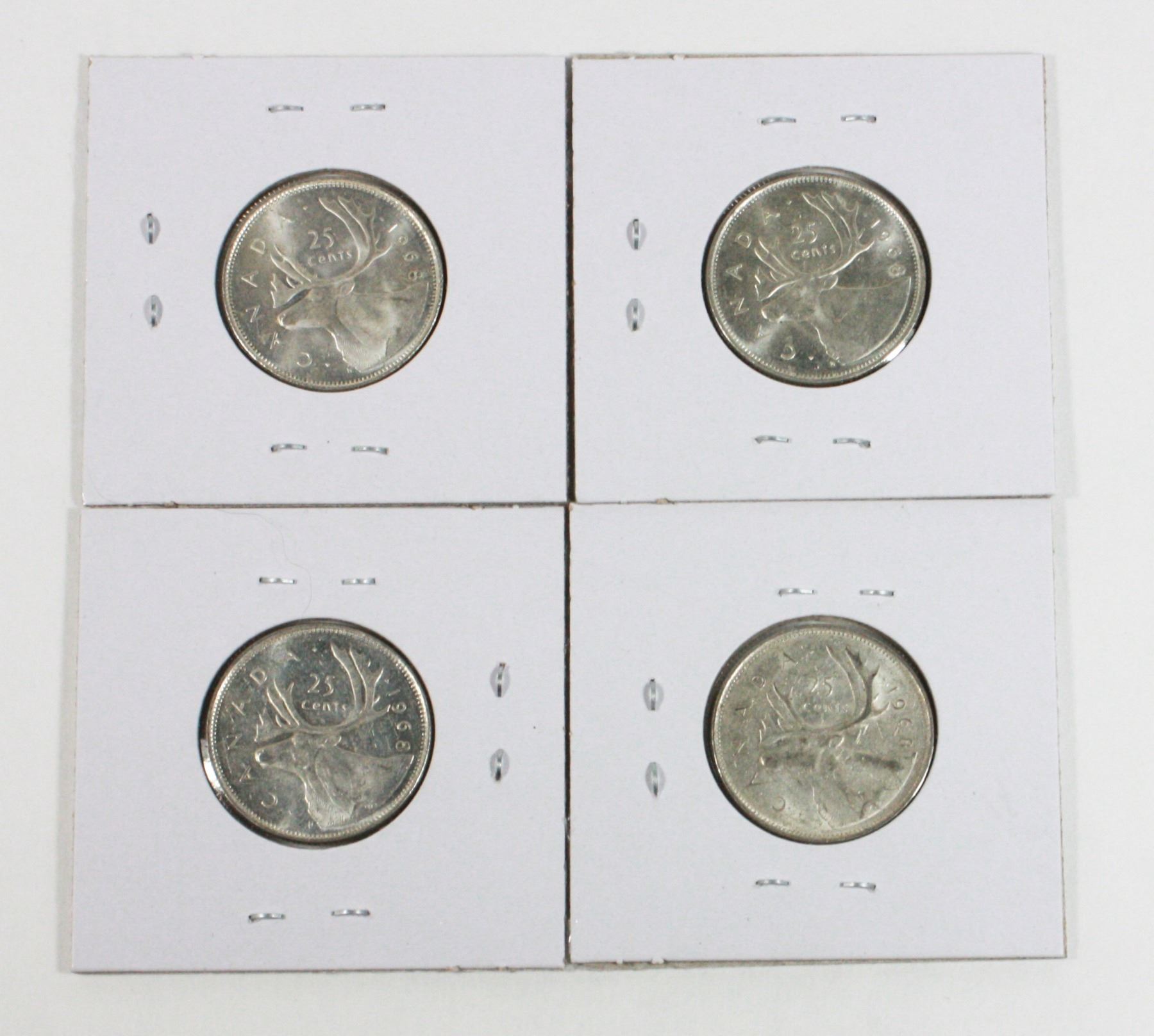 QUARTERS LOT OF 4 QEII QUEEN ELIZABETH II CANADA CANADIAN SILVER COINS 1968